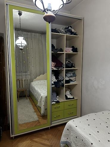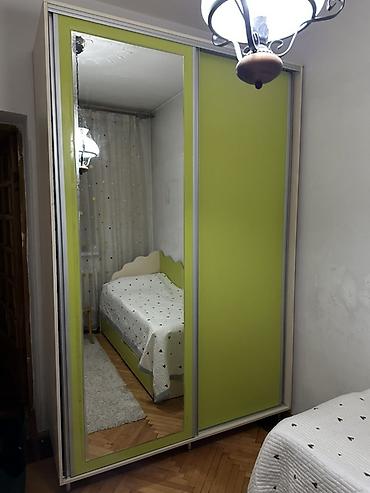 - Раздвижные двери, одна с большим зеркалом в раме салатового цвета.