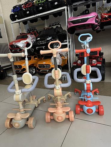 - 3-в-1: самокат с Т-рулём, толокар с родительской ручкой, каталка со сиденьем.