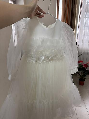 5-6 жашка туура келет Нарядные платья для девочки (2 модели) 1) Белое праздничное платье: - Цвет: молочно-белый - Верх: полупрозрачная сетка с вышивкой и бусинами, круглый вырез - Рукава: длинные ...