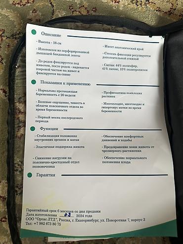 - Назначение: поддержка живота и пояснично-крестцового отдела во время беременности (с 20-й недели) и в первый месяц послеродового периода. Профилактика растяжек, обеспечение комфортных движений и ходьбы, предотвращение чрезмерного растяжения кожи живота, поддержание нормального положения плода. Подходит при многоплодной беременности, многоводии и гипертонусе матки.