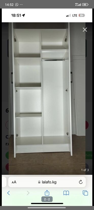 Двухдверный шкаф для одежды, цвет белый.