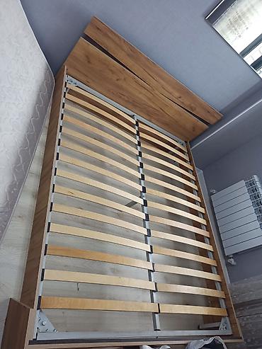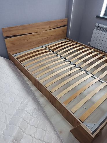 - Матрас в комплекте: пружинный/ортопедический (по виду средней жёсткости), высота около 20–22 см, стандартной двуспальной ширины.