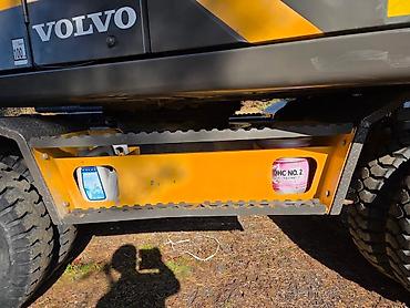 Колесный экскаватор Volvo EW140E - Марка/модель: Volvo EW140E (надпись на борту) - Тип: колесный экскаватор - Комплектация по фото: - гидролинии на рукояти - ковш с быстросъемом - отвал буль...