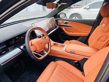 - Премиальная отделка салона в тёплом коньячном тоне: мягкая кожа сидений, дверных карт и подлокотников, контрастная прострочка