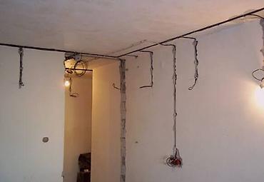 - Штробление стен и потолков под электропроводку, розетки, выключатели, групповые линии
