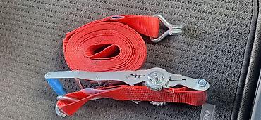 Стяжной ремень с храповым механизмом (ratchet strap) - Материал: 100% полиэстер. - Цвет: ярко‑оранжевый, хорошо заметен. - Оснащение: храповой механизм, крюки‑«J» из металла. - Маркировка на ярлык...