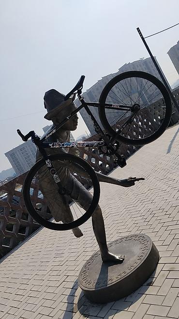 - Рама: трековая геометрия, жесткая, размер ближе к среднему (ориентируйтесь по фото). Наклейки/стикеры по всему фрейму.