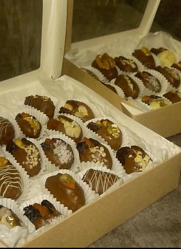Финики в шоколаде с начинками и топпингами. - Крупные мягкие финики, вручную нафаршированные орехами (миндаль, грецкий орех, пекан и др.). - Покрытие: молочный и тёмный бельгийский шоколад, аккура...