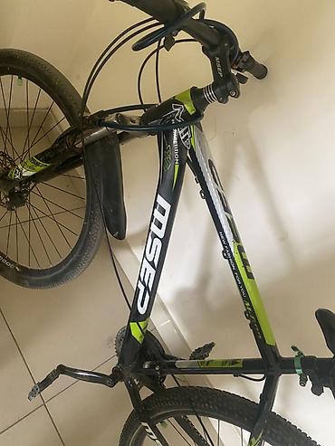 - Рама: стальная, размер ориентировочно M, окраска черно‑салатовая с белыми вставками