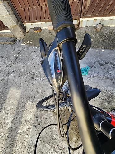 БЕЗ ВОЗВРАТА Красный горный велосипед, предназначенный для использования как на дорогах, так и на бездорожье. Велосипед оснащен дисковыми тормозами, обеспечивающими надежное и эффективное торможени...