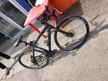 Городской/велосипед с рулём-бараном - Рама: алюминиевая, размер ориентировочно M (прямые трубы, внутренняя проводка тормозного троса). - Вилка: жёсткая. - Руль: шоссейный «баран» с обмоткой, вынос...