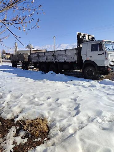 Самосвал КамАЗ 6x4 - Кузов-самосвал с задней разгрузкой, высокие борта с деревянными надставками - Полноразмерная запаска закреплена на площадке кузова - Трёхосная схема (две ведущие задние оси), ...