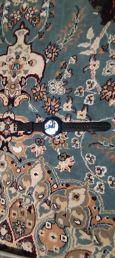 - Умные часы с круглым сенсорным дисплеем. Чёрный корпус и ремешок, циферблат с шаговой разметкой по безелю, отображение времени, даты и дня недели на экране. Кнопка управления сбоку.
