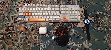 Подходит для рабочего места и игр: мышь с дополнительными кнопками, полноразмерная клавиатура, TWS‑наушники для музыки и звонков, смарт‑часы для уведомлений и трекинга в течение дня.