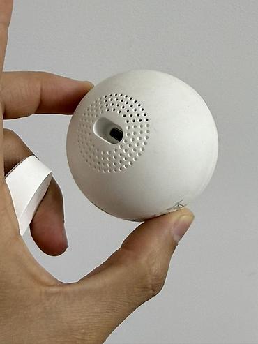 Компактная внутренняя Wi‑Fi‑камера в шарообразном корпусе с поворотным основанием. Черная глянцевая лицевая панель с объективом и индикатором микрофона.