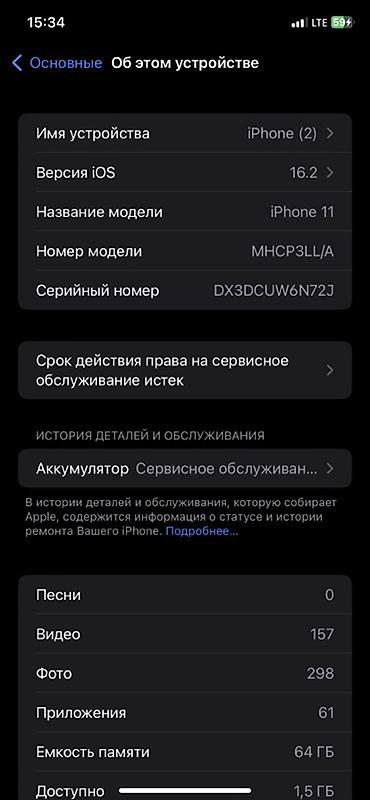- На устройстве установлены приложения, фото и видео: 61 приложение, 298 фото, 157 видео (по данным экрана «Об этом устройстве»)