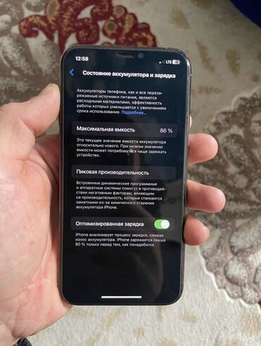 - Показатель “Состояние аккумулятора” на скриншоте — 86%, включена оптимизированная зарядка.