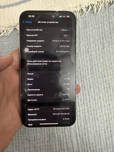 Продаю IPhone 14 Pro Max 256Г Состояние аккумулятор 87% Имеется коробка и кабель