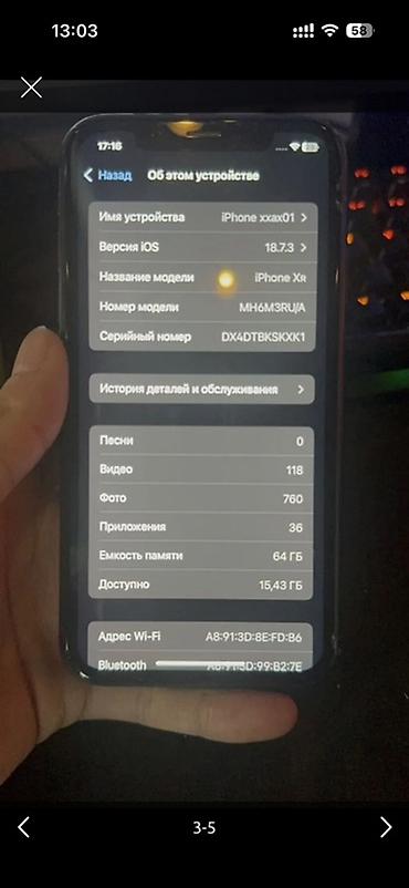 IPhone Xr, Б/у, 64 ГБ, Черный, Кабель, 78 %