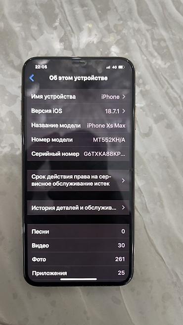 IPhone XS Max, 256 ГБ Характеристики: - Модель: iPhone XS Max (номер модели MT6W2J/A) - Цвет: золотистый - Память: 256 ГБ (доступно ~242 ГБ) - iOS: 18.7.5 - Экран Super Retina OLED 6.5", вырез (no...
