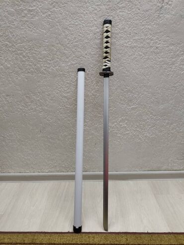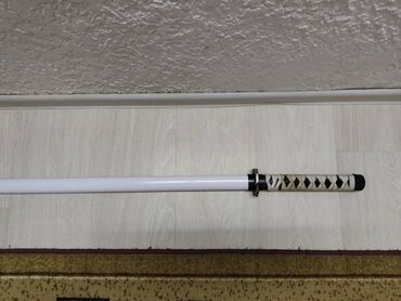 - Рукоять в традиционном стиле: оплетка белого цвета с черными ромбовидными вставками, навершие и гарда темные.