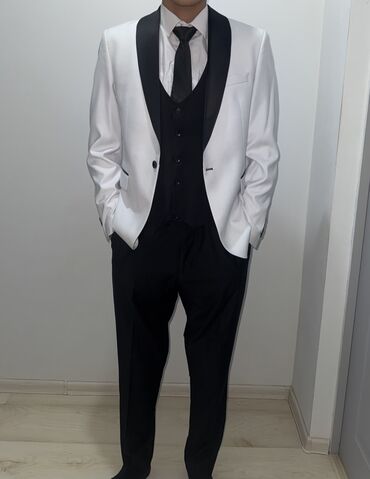 Классический мужской смокинг черного цвета от салона Cosmo Bella - Однобортный пиджак на одну пуговицу - Атласные заострённые лацканы (peak lapels) и отделка карманов - Нагрудный карман с белым пл...