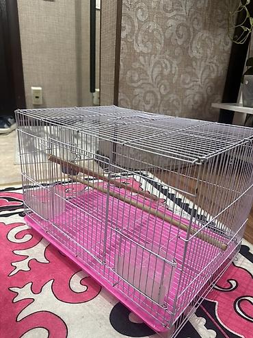 Большая клетка для мелких и средних птиц за 3000 сом. Попугаи за 1 штуку 1500 сом - Просторная прямоугольная клетка с фигурной крышей, металлические прутья светлого цвета. - Съемный глубокий подд...