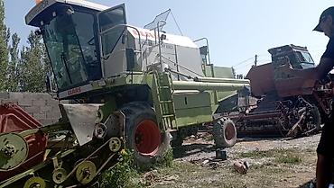 Примечание: на одном из комбайнов на фото отсутствуют некоторые навесные элементы/колёса, второй укомплектован жаткой; возможна работа как техники, так и использование на запчасти.