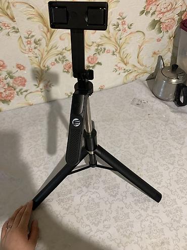 - Трансформируется из складной селфи‑палки в настольный штатив с тремя опорами.