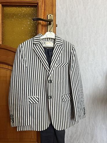 Детский комплект: полосатый пиджак + брюки, идеально подойдет для мероприятий, тоев, в отличном состоянии, на рост 134-140см, возраст 9-10 лет