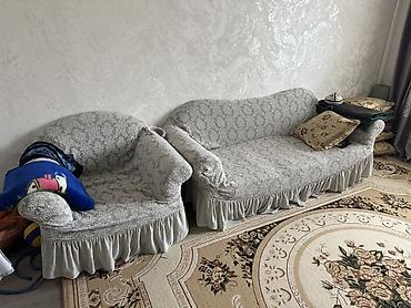 - Накидки/чехлы: серые, с орнаментом и оборкой по низу, защищают сиденье, спинку и подлокотники.