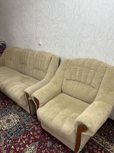 Мягкий комплект: диван и 2 кресла в классическом стиле.