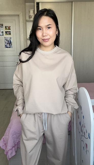 Женский уютный костюм-джоггер из мягкого трикотажа в бежевом цвете. производство Албания. оригинал. бренд. привезли из США. . Особенности: - Свитшот с круглой горловиной и длинным рукавом. - Брюки...