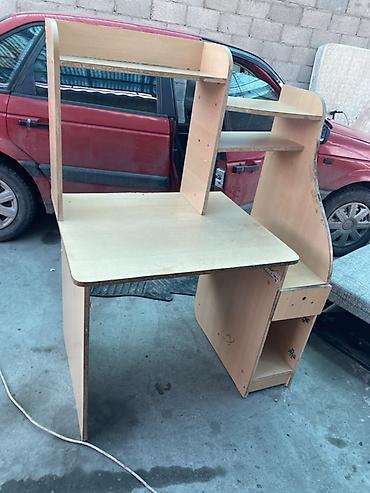 Компьютерный/письменный стол из ЛДСП в светло-бежевом цвете.
