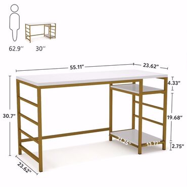 - Универсальная компоновка: рабочая поверхность + боковой стеллаж для оргтехники, книг и аксессуаров. Подходит для домашнего офиса, учебы, работы с ПК и периферией.
