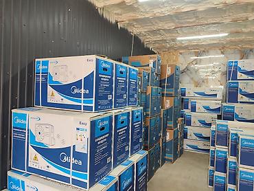Также на складе видны водонагреватели Midea (накопительные).