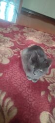 - Дымчато-серый, пушистый, с янтарными глазами.