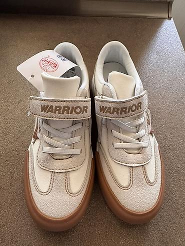 - Модель: низкие кроссовки с шнуровкой и липучкой на подъёме (надпись WARRIOR).