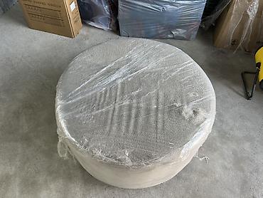 Пуфик курглый цилиндрические, 2 шт. - Форма: круглая, диаметр ориентировочно 50см, высота около 50см. - Обивка: мягкая ткань под замшу/велюр, цвет — пудрово‑голубой. - Наполнение: плотный упругий...