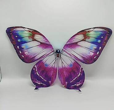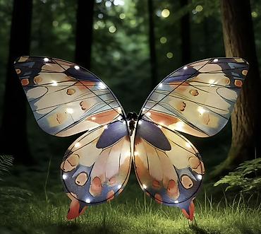 - Большие разноцветные крылья с узорами; контур подсвечен яркими LED‑огнями по периметру.