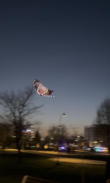Летающая светодиодная бабочка — крупный радиоуправляемый орнитоптер для эффектных полётов в сумерках и ночью.