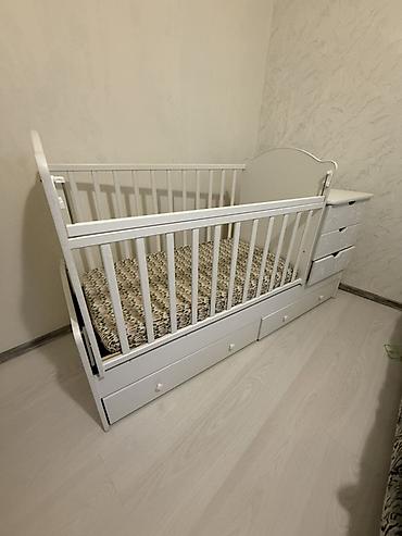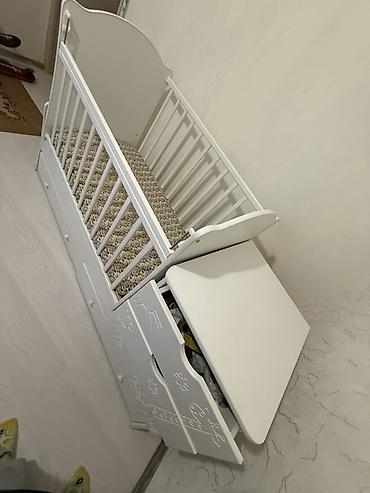 Срочно продам связи с выездом , 2 мин сом - Материал: ЛДСП, белый цвет. - Конструкция “2 в 1”: кроватка с высокими реечными бортиками + встроенный комод сбоку. - Комод с рисунком мишек: несколько ...