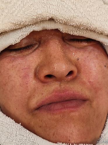 - Уход за лицом во время прогрева: распаривание полотенцем, очищение пор, работа по Т‑зоне.