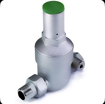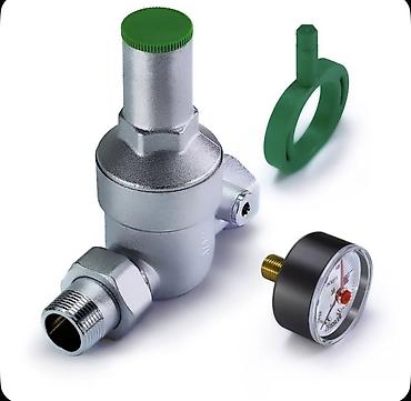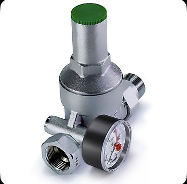 - Регулировка выходного давления – с помощью верхнего винта (под защитной зеленой крышкой); контроль по манометру