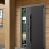 Ищете стильную и современную дверь? Обратите внимание на эту гладкую, матовую дверь антрацитового цвета с тонкой серебристой окантовкой. У нее минималистичная черная ручка, которая идеально дополня...