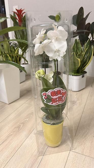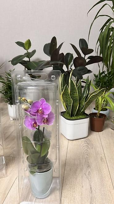 Миниатюрная орхидея фаленопсис в горшке, упакована в прозрачный