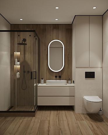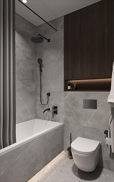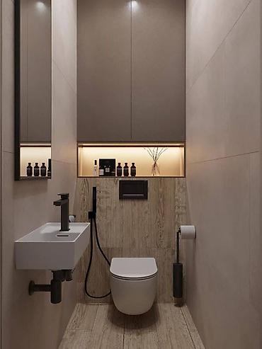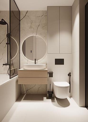 Результат: готовый к отделке или полностью укомплектованный санузел с ровной геометрией, скрытыми коммуникациями и удобной эргономикой, как на визуализации.