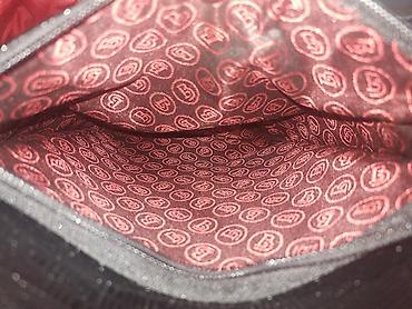 - Материал: натуральная кожа с тиснением под рептилию (чёрный цвет), фирменная подкладка бордового цвета с логотипами.