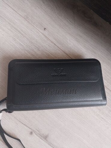 Мужской клатч-органайзер из черной фактурной эко-кожи. Особенности: -