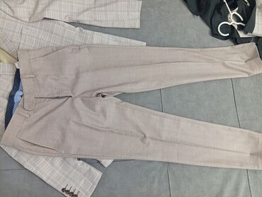 - Брюки прямого кроя со стрелками, шлевки под ремень, боковые и задние карманы.